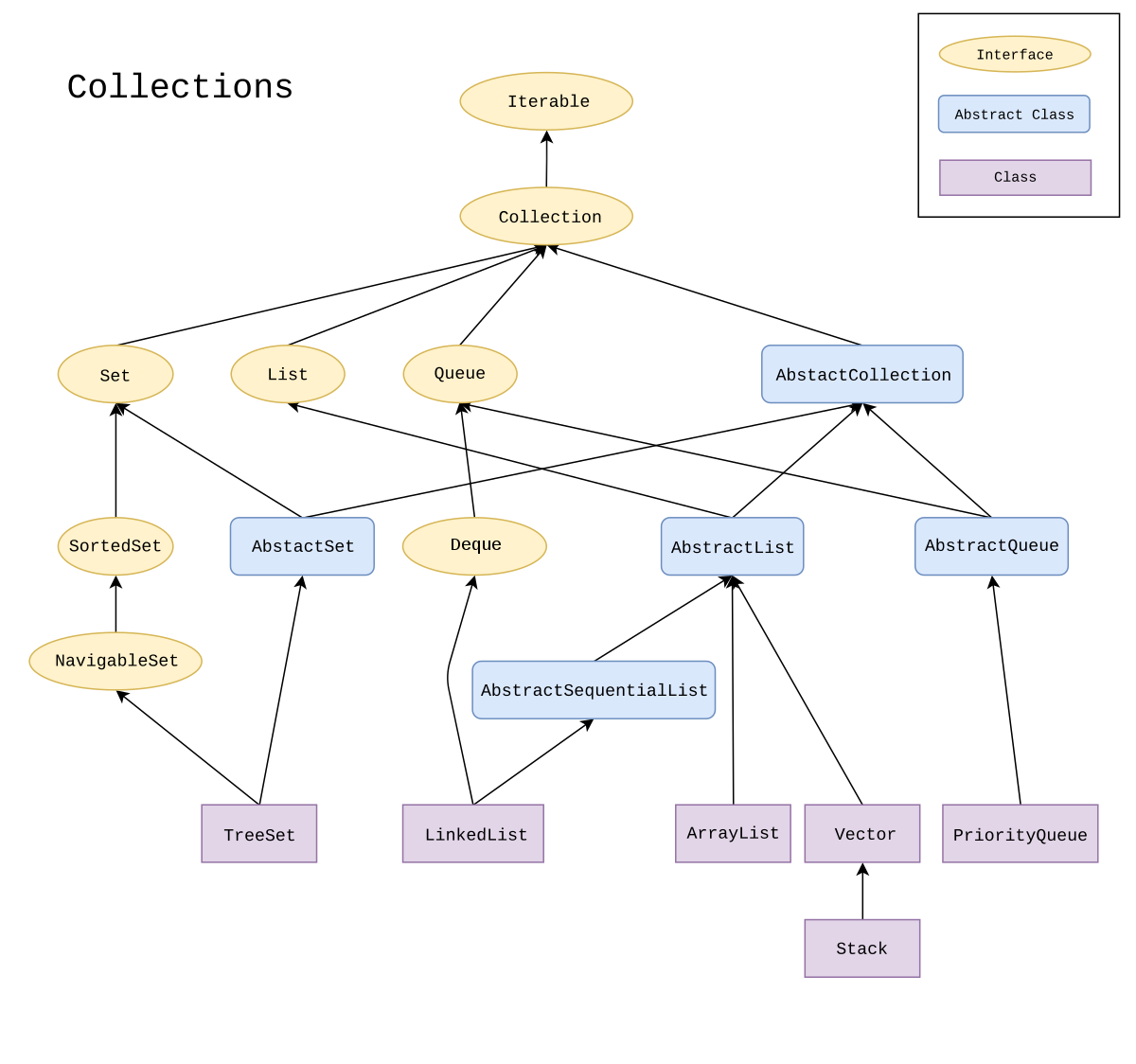 출처 : https://en.wikipedia.org/wiki/Java_collections_framework Collection 인터페이스는 List, Set, Queue의 3개 인터페이스로 구분할 수 있고, Map의 경우 Collection 인터페이스를 상속받고 있지 않지만 Collection으로 구분된다.